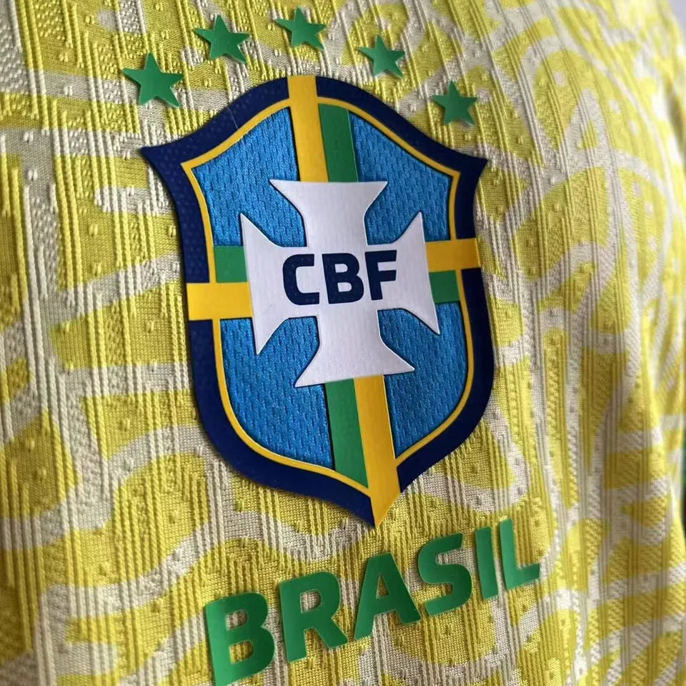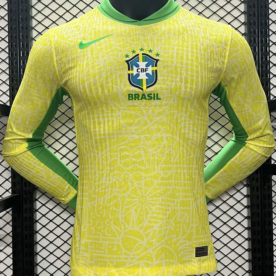 2024/25 Brazil Home Yellow Player Version Long Sleeve Jersey