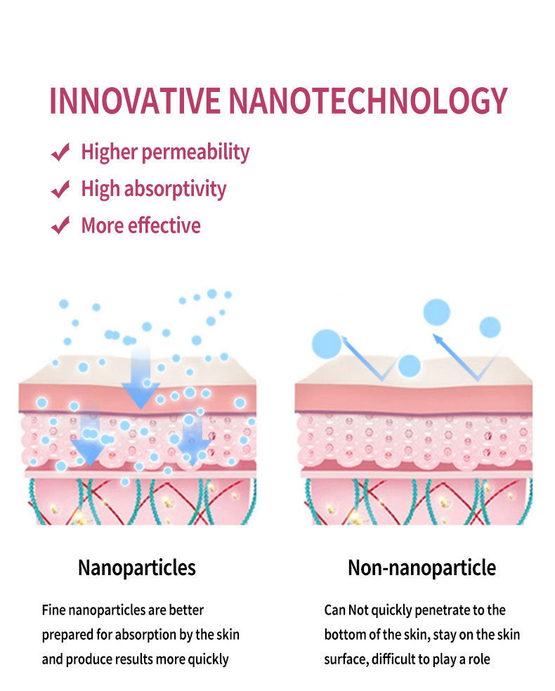 The nanoparticles in VoluptuousDream™'s formula allow the active ingredients to penetrate the deeper layers of the skin more quickly and effectively. This results in: