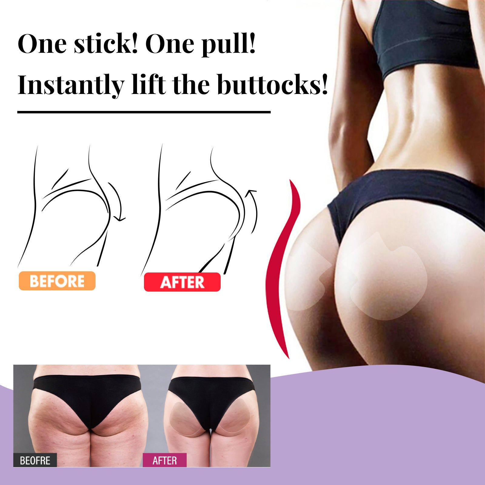 EELHOE Butt Lift Tapes can help you solve problems such as sedentary butt sagging, excessive butt fat, and postpartum butt sagging. EELHOE Butt Lift Tapes are hypoallergenic and latex-free. EELHOE Butt Lift Tapes keep your buttocks shaped all day long.