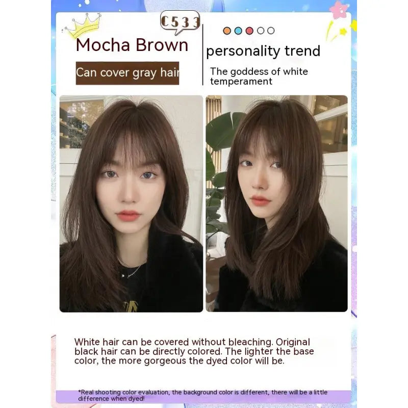 Safety and Convenience at Your Fingertips: This hair dye is developed to be non-toxic, non-irritating, and non-allergic, providing a mild and nourishing hair care concentrate essence that doesn't harm your body. It's perfectly suited for convenient home use – simply mix the dye with an oxidant in a 1:1 ratio. With a rich array of color codes, you can easily find the perfect shade to match your preferences and keep up with the latest fashion trends.