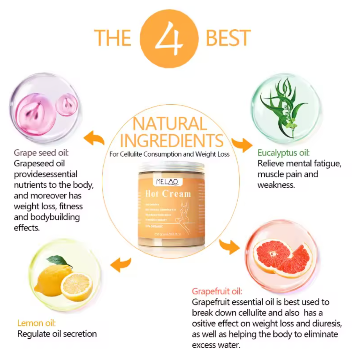 Discover the secret to a smoother, more toned physique with MELAO Slimming & Cellulite Firming Cream. This powerful and richly formulated cream is your ultimate solution for achieving the slender figure you desire, quickly and effectively. Packed with beneficial plant extracts, our unique formula penetrates deep into the skin, actively helping to burn away stubborn fat cells in critical areas like the abdomen, hips, thighs, legs, and arms.