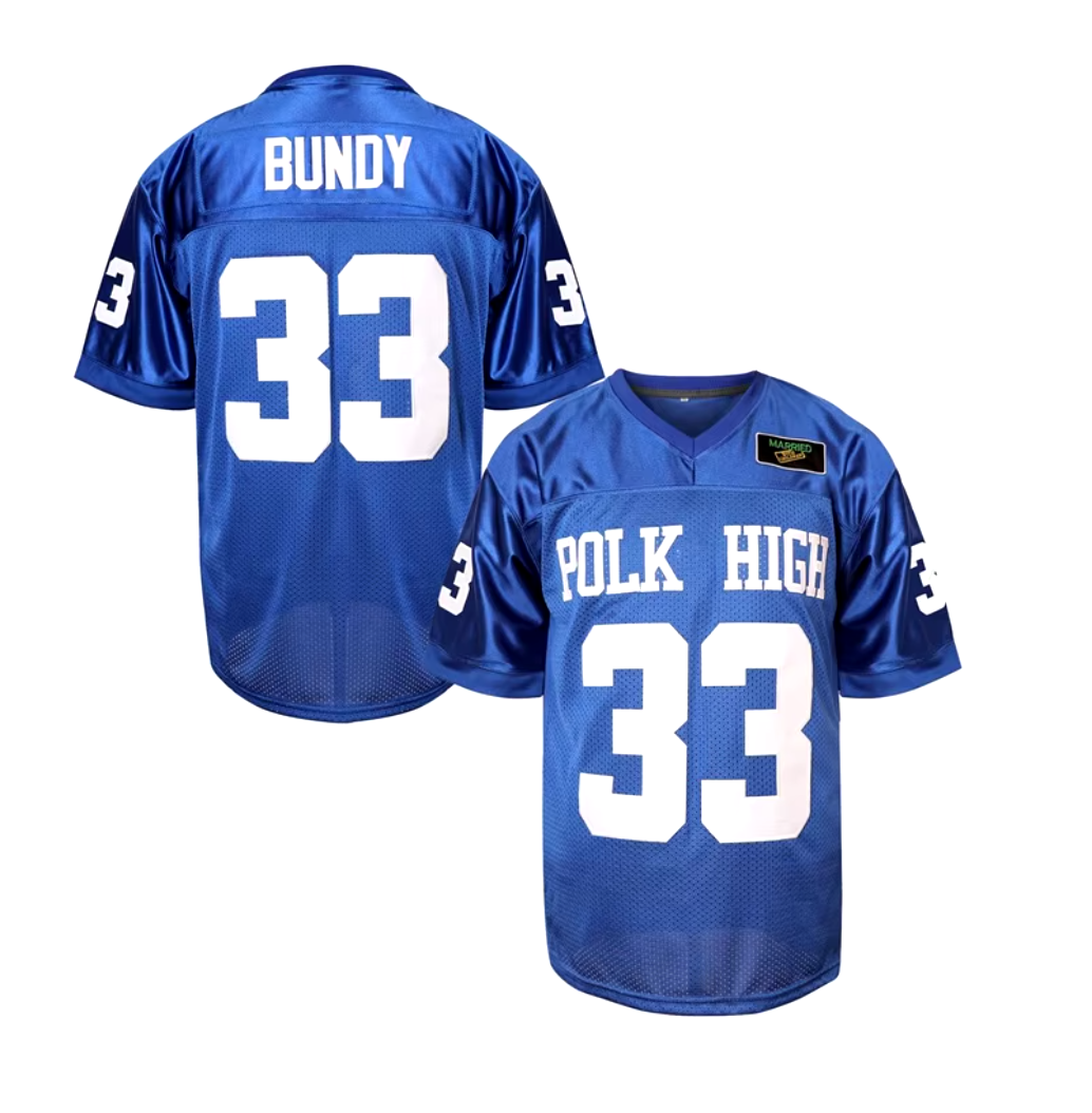 POLK HIGH #33 BUNDY Football Jersey - Married with Children TV Series, Stitched Blue Jersey