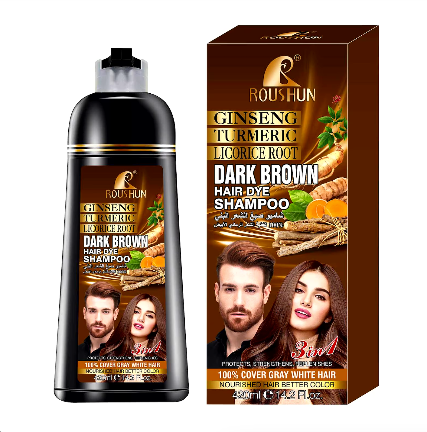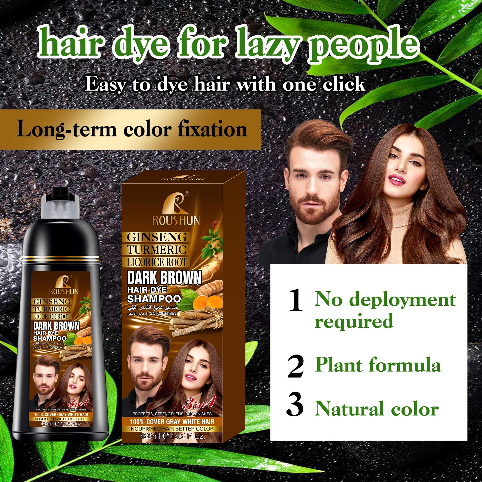 ROUSHUN Brown Hair Color Shampoo for Gray Hair Instant Hair Natural Long Lasting for Men and Women 14.2 Fl.Oz 420ml