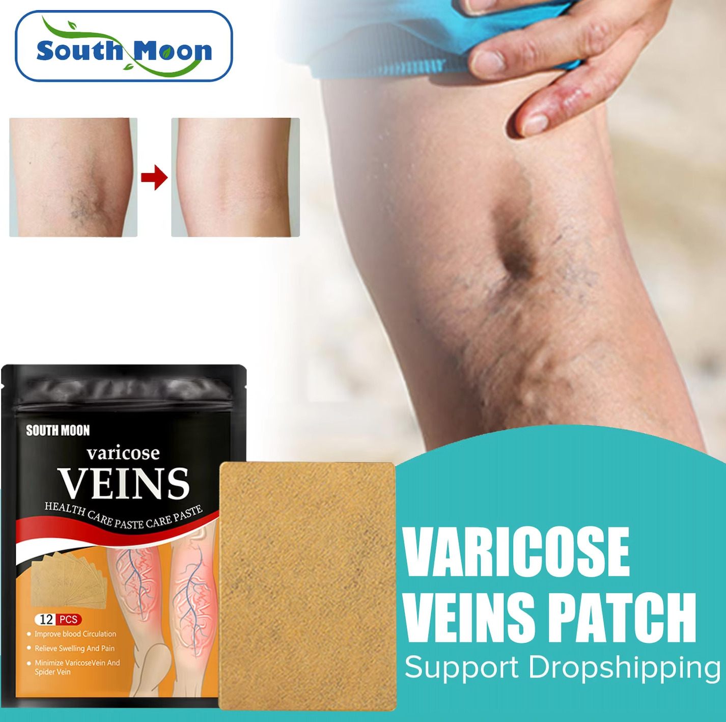 SOUTH MOON Varicose Vein Patch – Relief for Vasculitis, Phlebitis, and Spider Veins, Anti-Swelling, Leg Pain Reliever